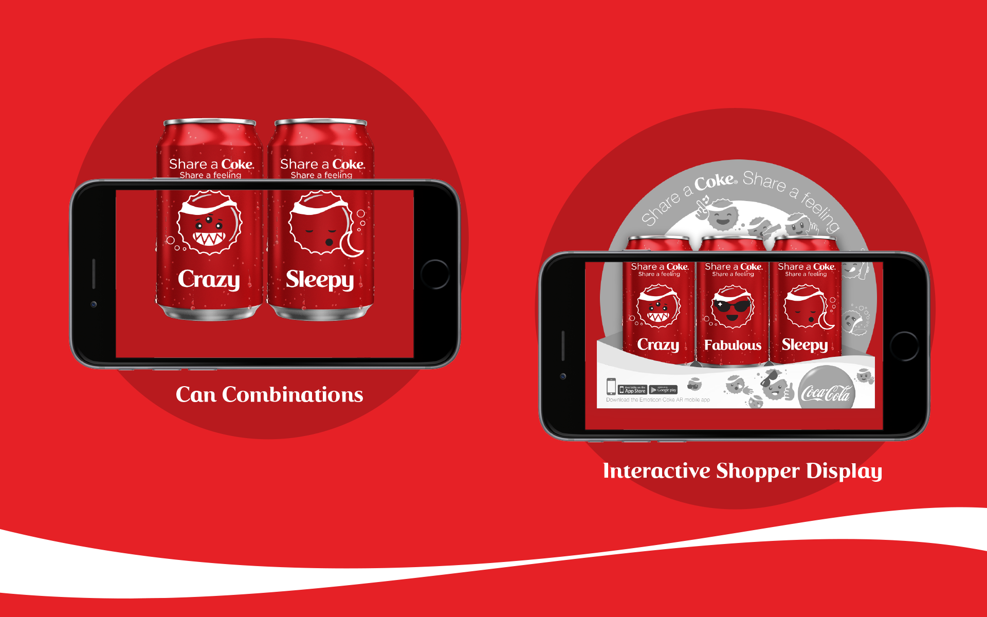 Challenge We designed Emoticon Coke to stand out on the shelf, but Coke wanted to go further and engage both consumers and their partners to drive purchase at retail. Strategy Working with the thought of ‘Coke in one hand, mobile in the other,’ we used image recognition to bring every Emoticon Coke label to life in delightful ways with instant gratification and new ways to share their feelings. Solution A simple AR app turned every mobile into a magic window that brought Coke labels to life. Every emoticon had unique animations. Put two or three cans together and they even interact with each other! We designed the experience to be simple, starting at retail to boost sales with a unique partnership with LINE messenger. The app could update itself to refresh the animations, creating a long-lasting way to engage with customers. At retail, holographic displays brought Coke cans to life, giving glimpse of the exciting possibilities hiding behind every Coke. Result Coke bought our idea to share regionally across APAC markets for implementation.